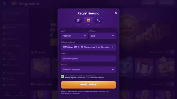 Starten Sie mit Kingmaker: Registrierung & Login